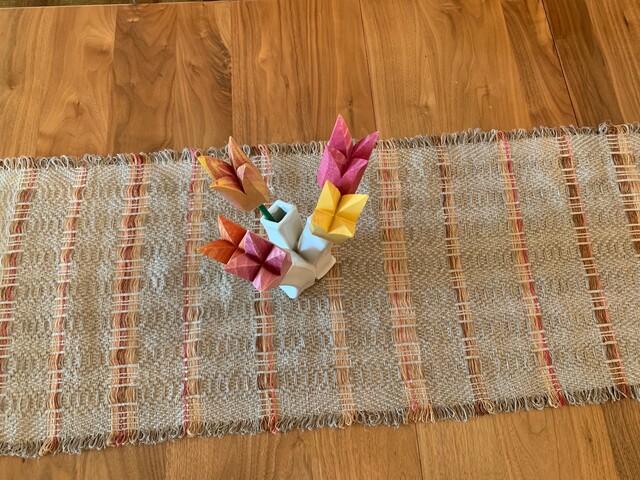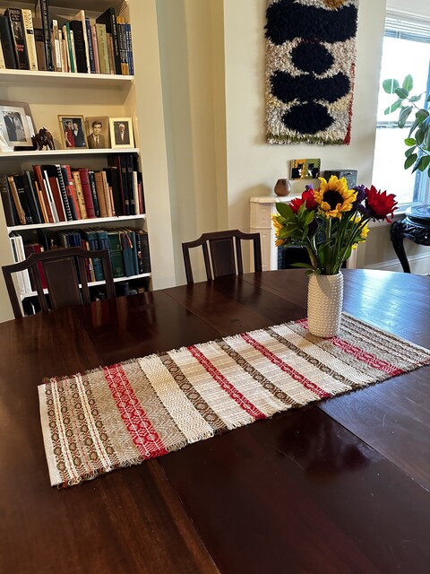 This was our first group project in the new home of the Weavers Guild of Minnesota, the Open Book building in Minneapolis. It was a joy to work in this bright space and also have the opportunity to demonstrate weaving Telemarksteppe to visiting students, guests, and Guild members.
