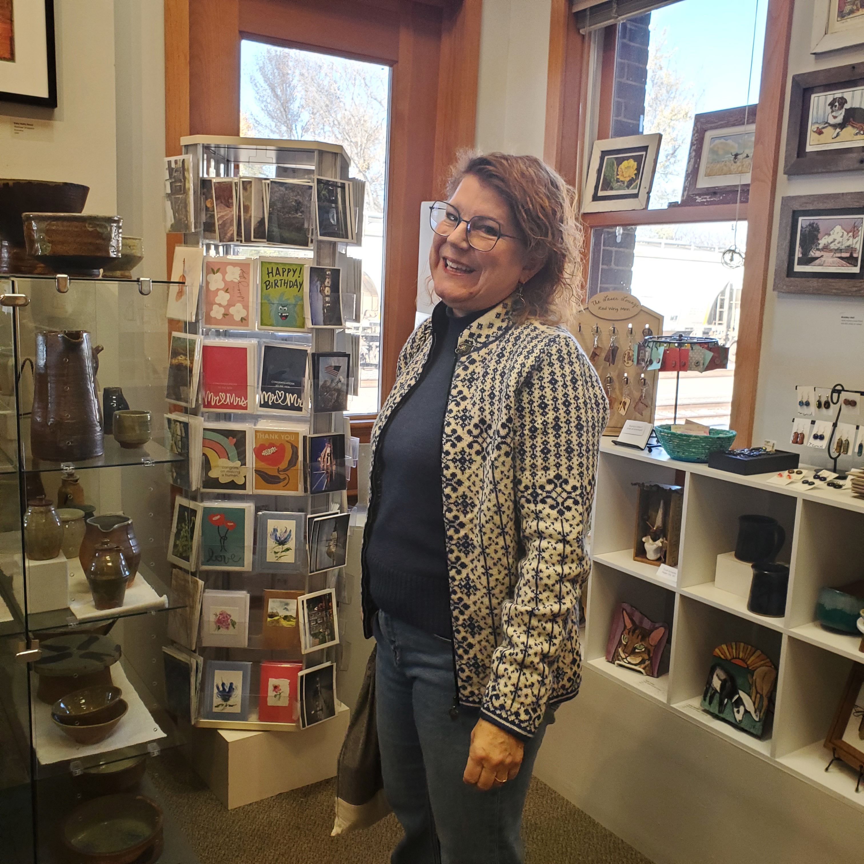 Kala Exworthy takes a moment to enjoy the Red Wing Arts shop. (Highly recommended!)