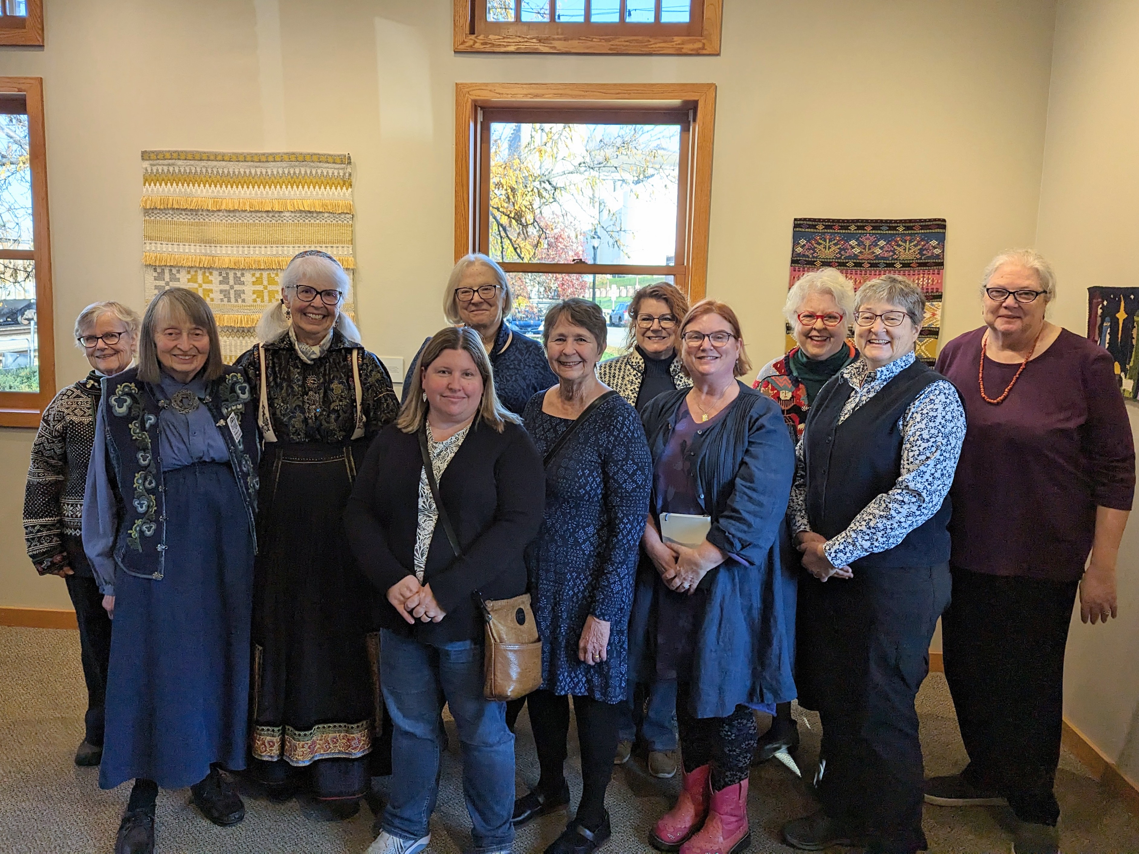 Scan Weavers present at the reception. Back row: Edi Thorstensson, Peg Hanssen, Melba Granlund, Kala Exworthy, Mary Skoy, Lisa Torvik. Front row: Nancy Ellison, Nancy Pedigo, Jan Mostrom, Lisa-Anne Bauch, Barb Yarusso.