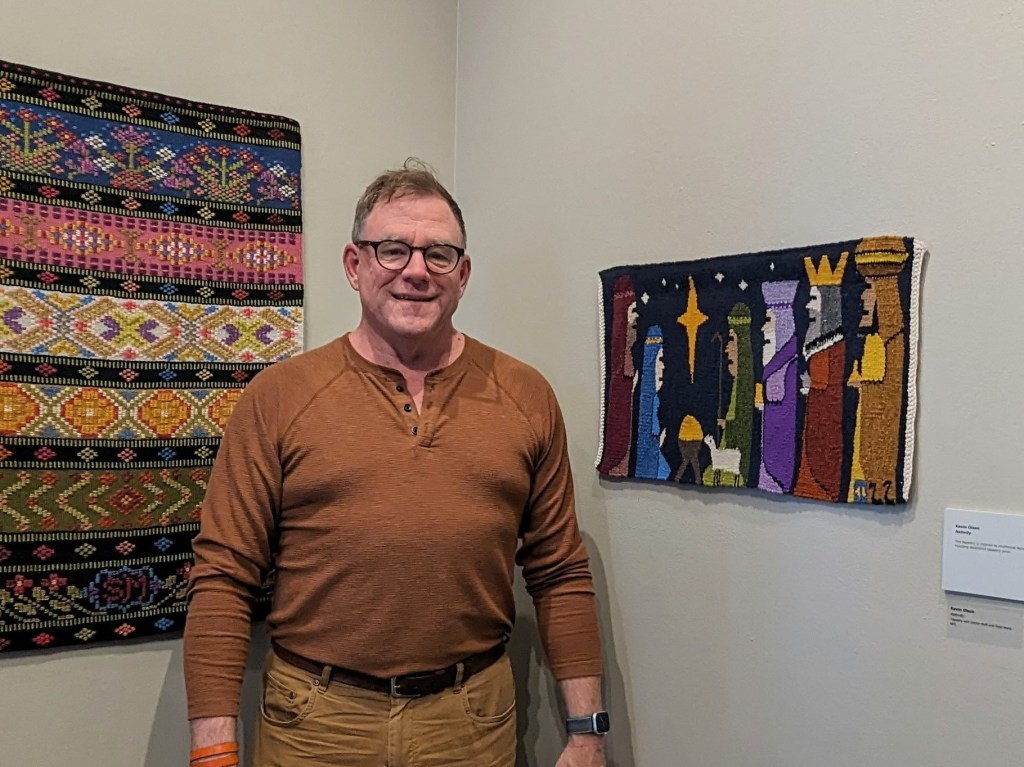 Scan Weaver Kevin Olsen and his Norwegian tapestry Nativity.