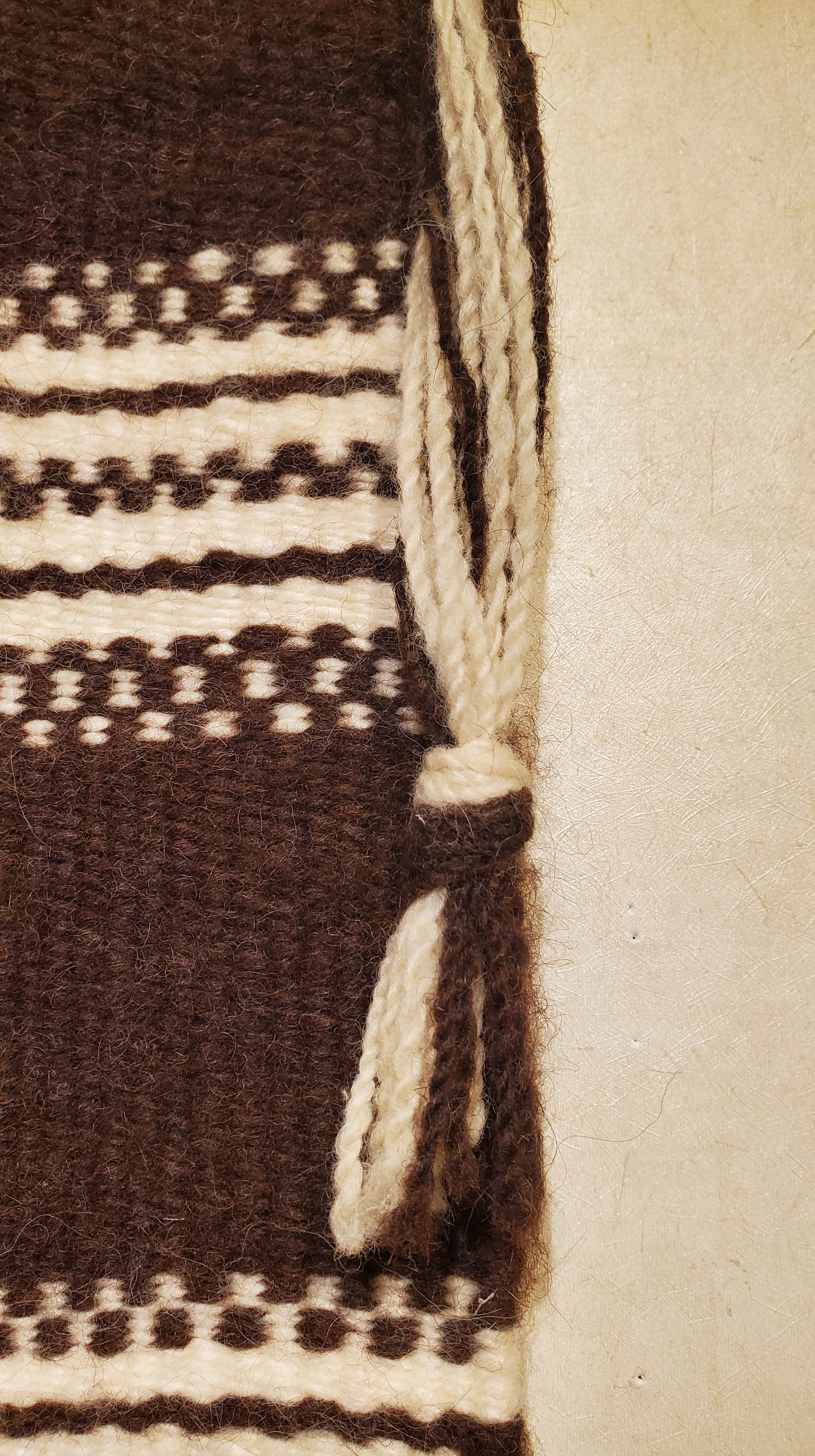 Sharon Moe Marquardt wove this Sami-style grene on a warp-weighted loom while on a study trip in Norway. She learned this traditional technique from Sonja Vangen and Olaug Isaksen at Lofoten Folkehøgskole in Kabelvåg, near Lofoten.