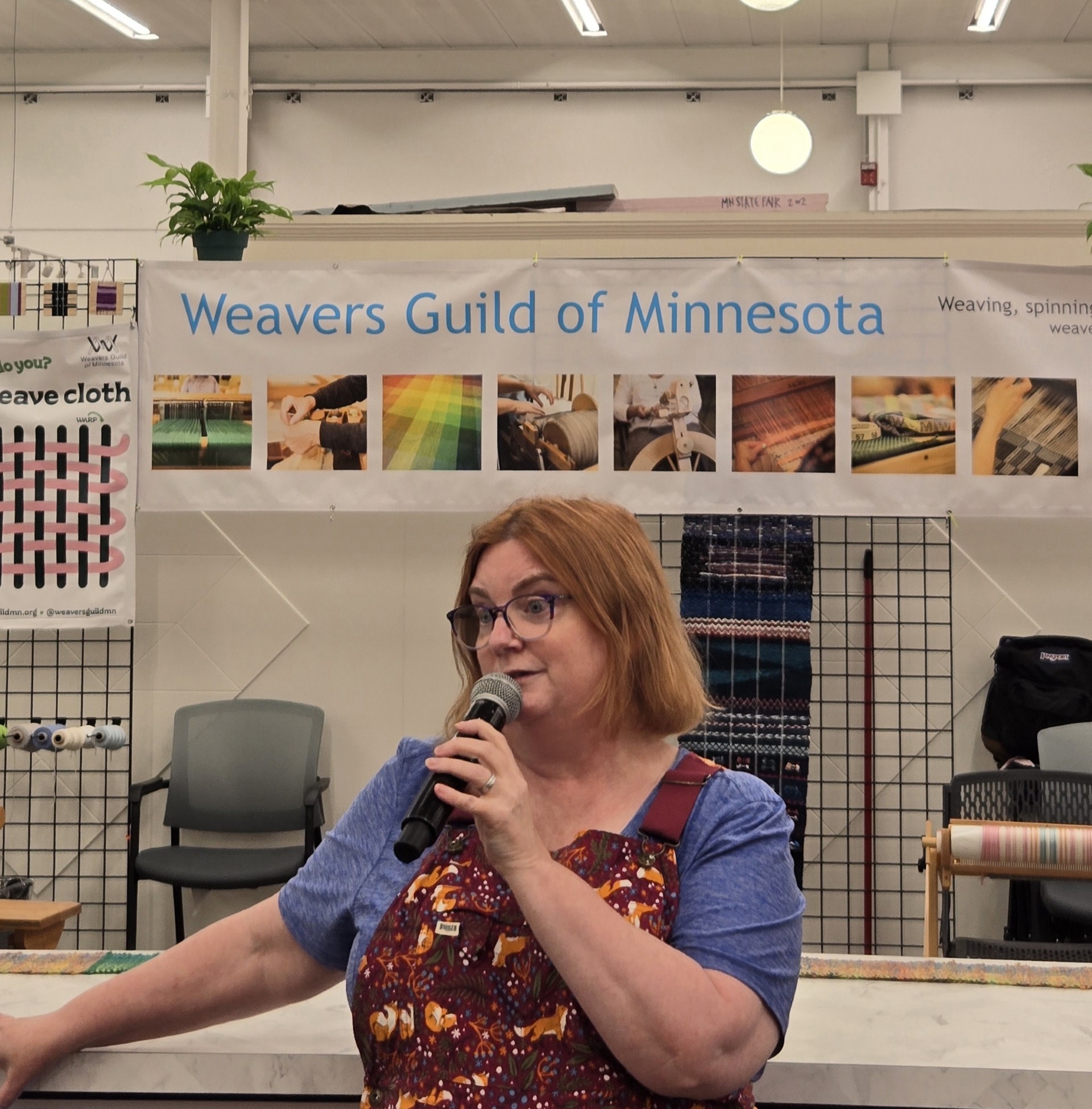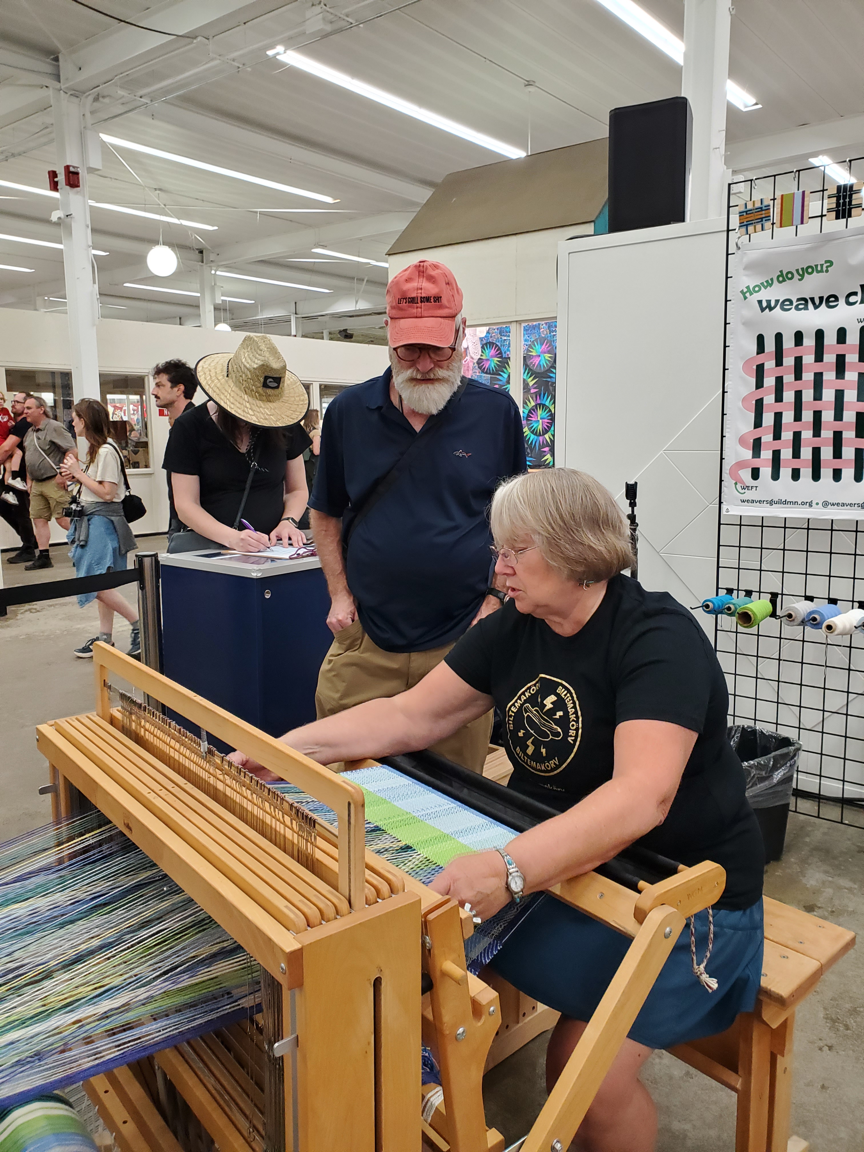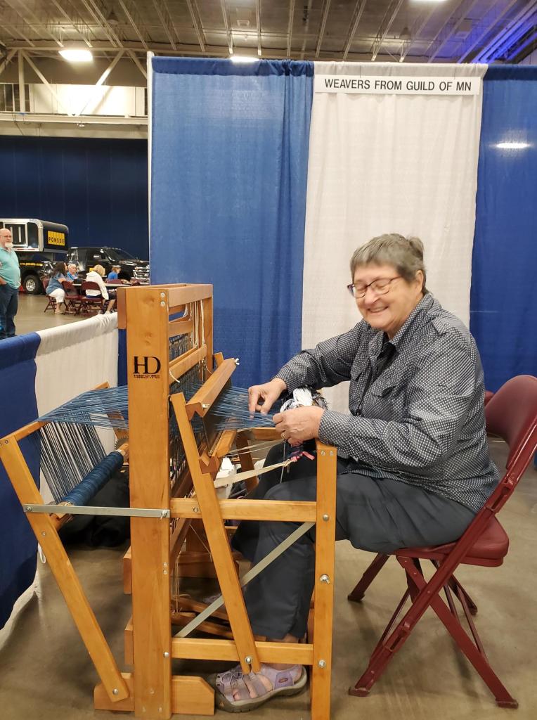 Of course, no Minnesota summer is complete without a trip to the Minnesota State Fair! As always, volunteers from the Weavers Guild of Minnesota were present for the entire Fair, from opening day to closing night. Demonstrations and talks took place in our new booth, centrally located in the Creative Arts Building.
