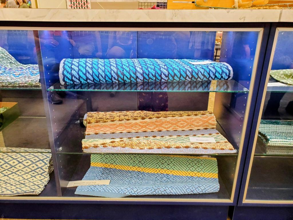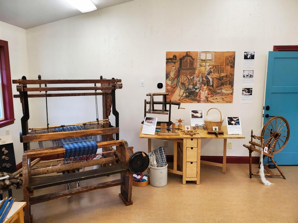 Among the treasures at Gammelgården is a loom crafted in Sweden in 1879. The loom was built by a father whose daughter was getting married and immigrating to the United States. It was his parting gift to her. Judy Larson warped the loom in beautiful blue stripes, and it still weaves beautifully.
