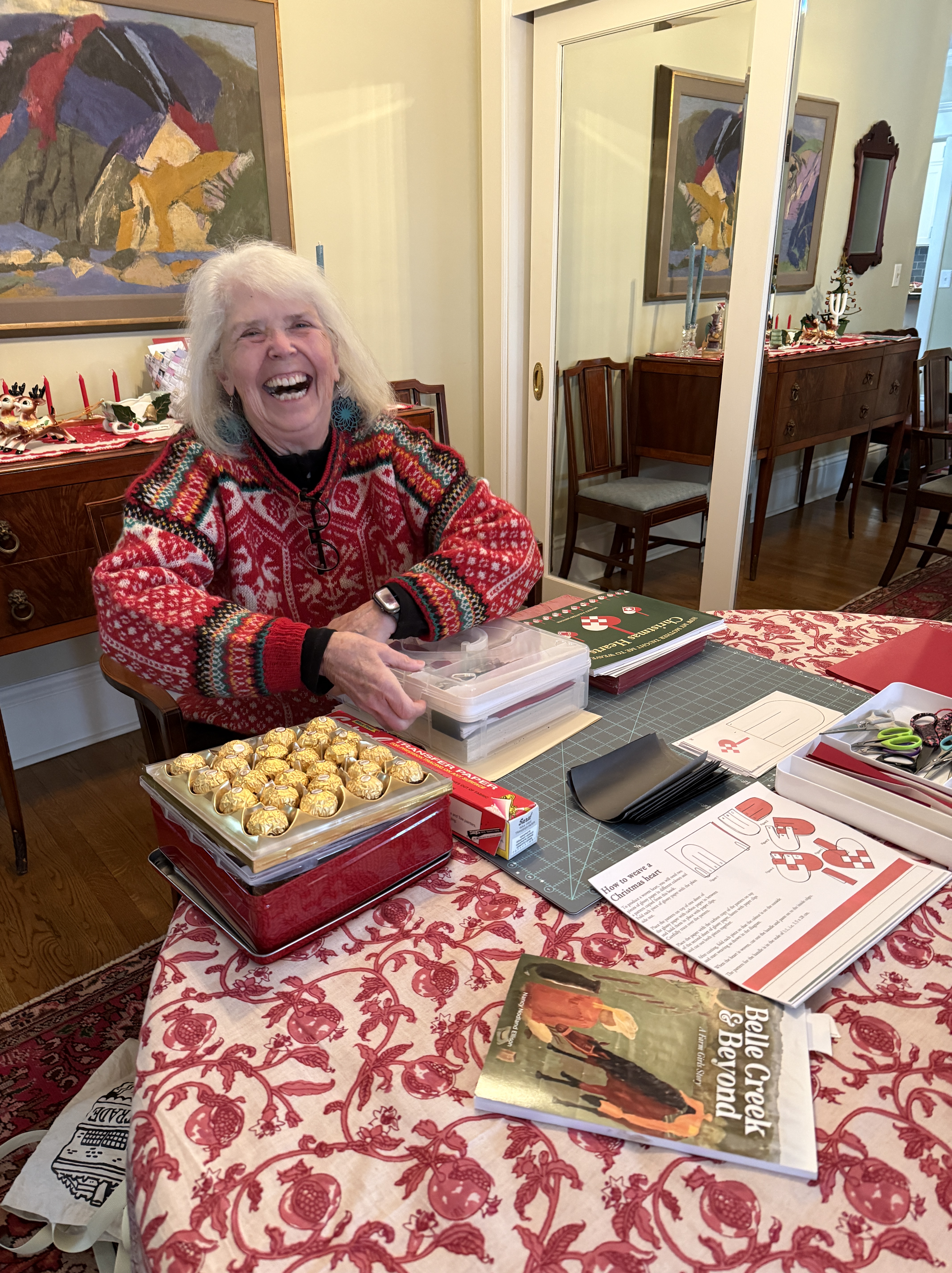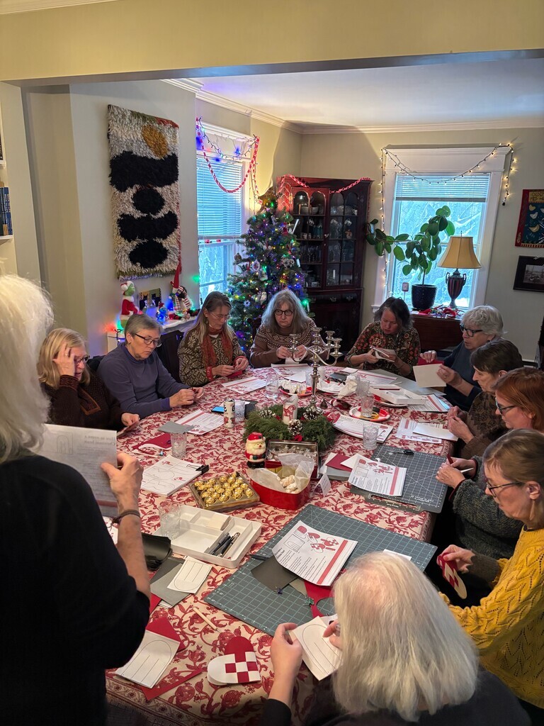 Peg Hansen, Scandinavian Weavers Study Group member and a former art teacher, guided our party activity. She supplied strong, beautiful paper, detailed instructions, and enormous enthusiasm.