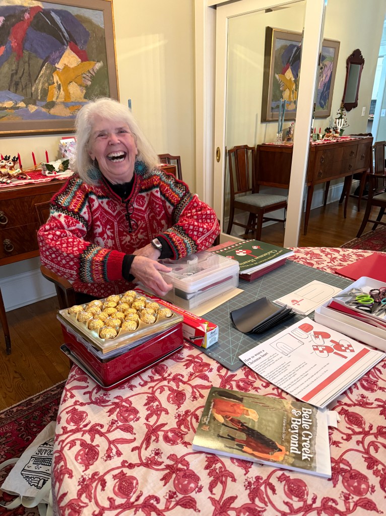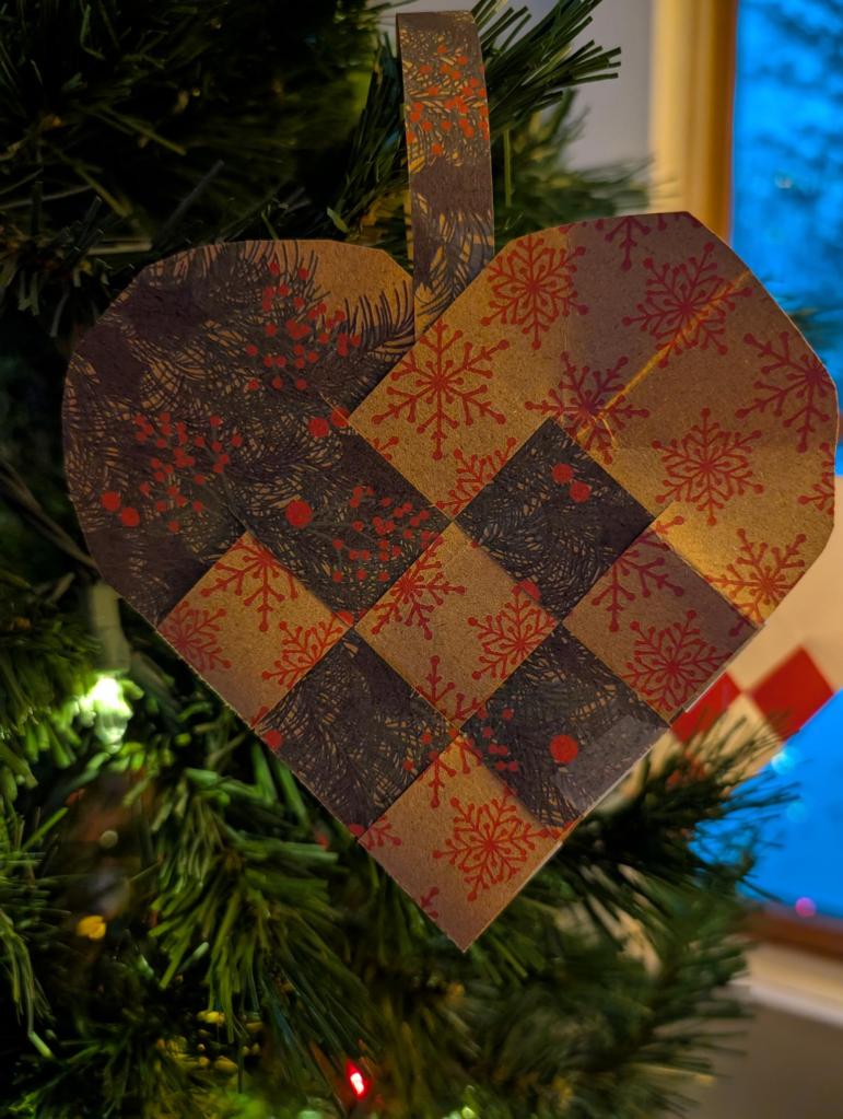 At our annual holiday gathering this year, we wove Danish-style paper hearts. The idea for the project was prompted by an article in the Norwegian Textile Letter, “Edvard Munch’s Christmas Tree Baskets – A Christmas Story,” by Geir Thomas Risåsen.
