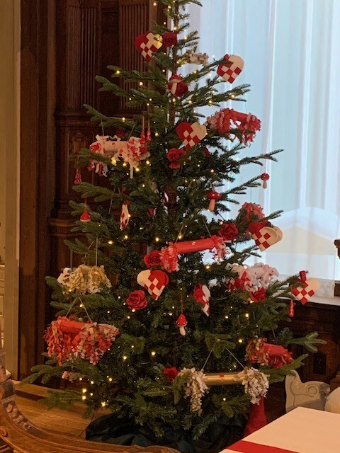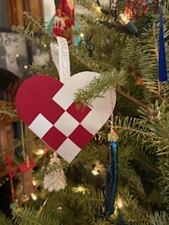 The paper hearts are traditionally filled with candy and hung as festive ornaments on the Christmas tree, as in the photo below from the American Swedish Institute in Minneapolis.