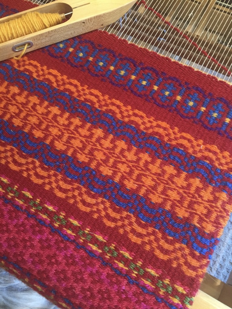 Those who have woven Flesberg say it is fun to weave but note that it is a slow technique, requiring patience and concentration. An inch of weaving per hour is a reasonable rate!