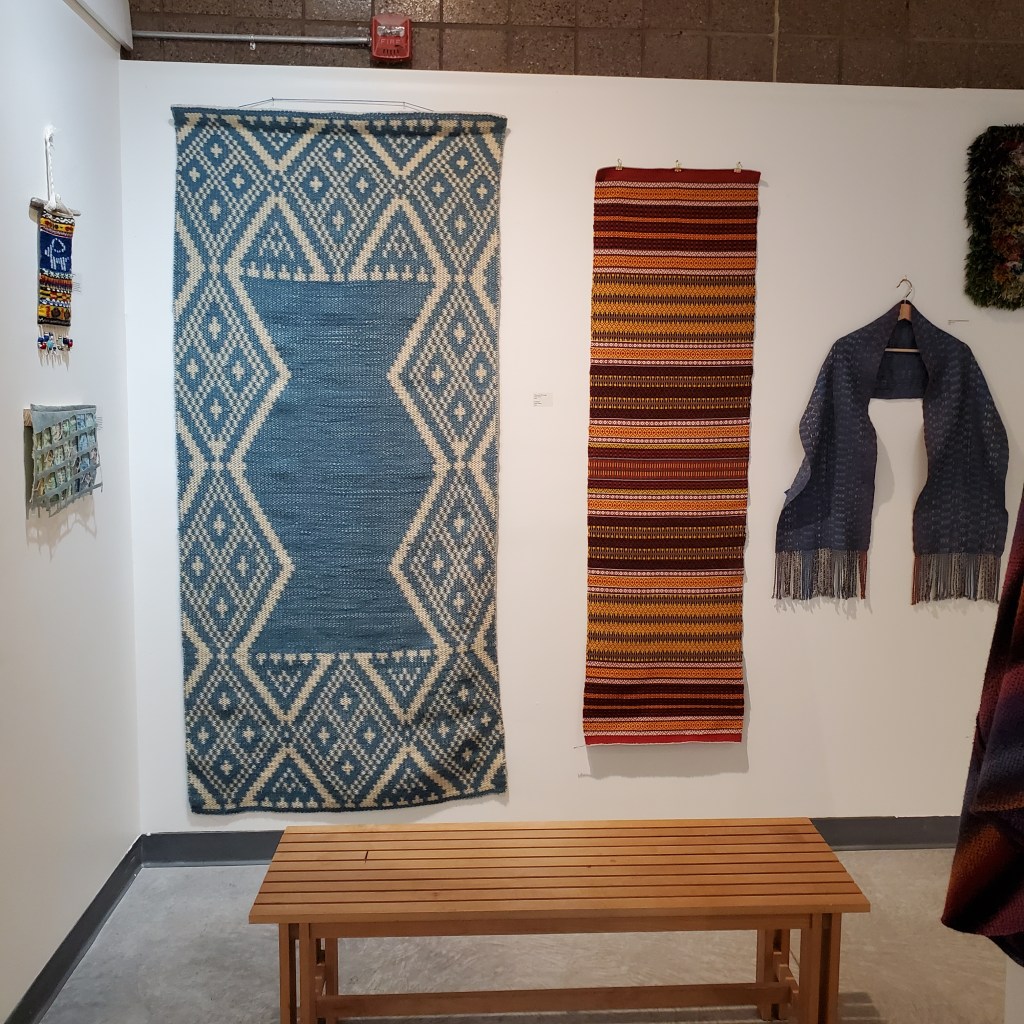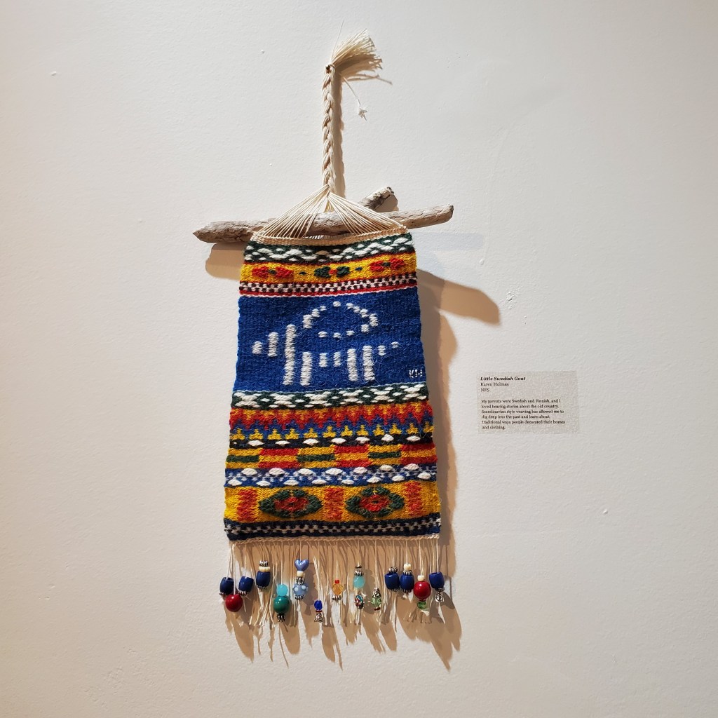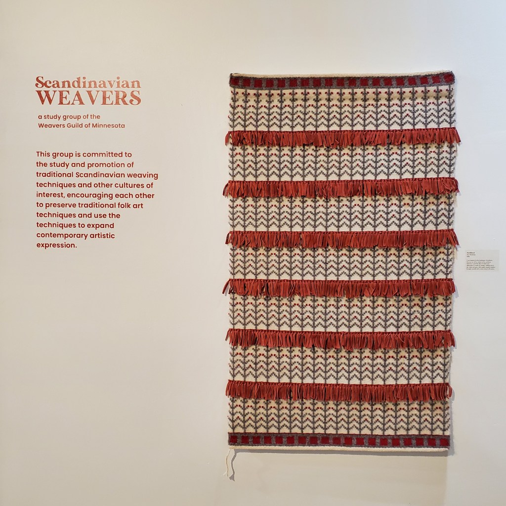 As promised, here are photos of items in “Weaving the North” woven by members of the Scandinavian Weavers group. I will also add a third blog post that reports on the “Weaving the North” panel discussion.