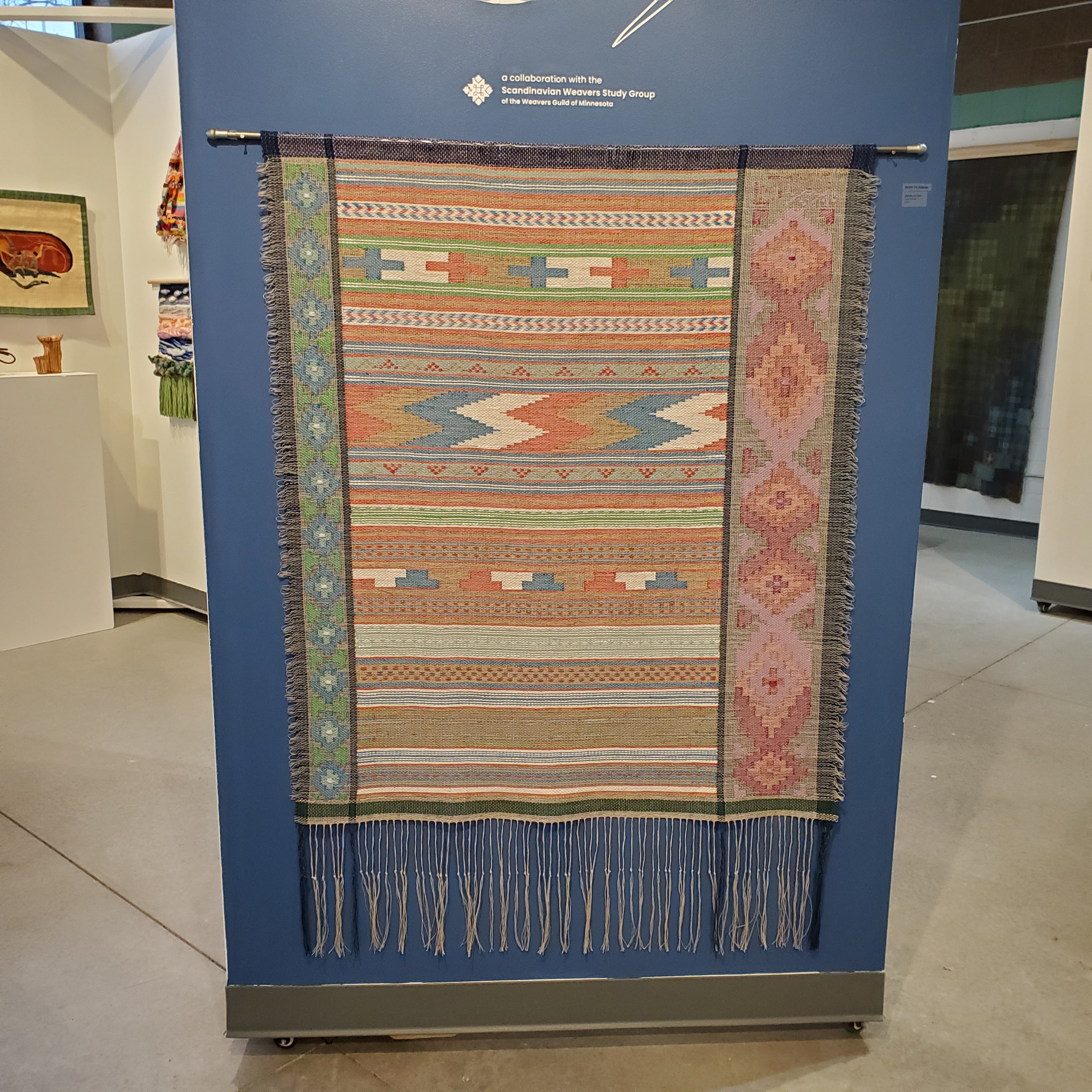 As promised, here are photos of items in “Weaving the North” woven by members of the Scandinavian Weavers group. I will also add a third blog post that reports on the “Weaving the North” panel discussion.